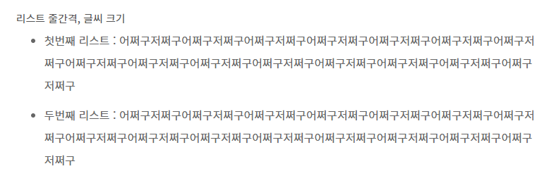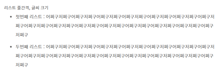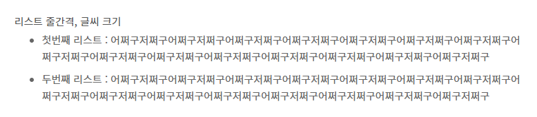 리스트를 변경하고 나니, 기본 텍스트의 글자 크기가 작아보여서 추가로 변경함.